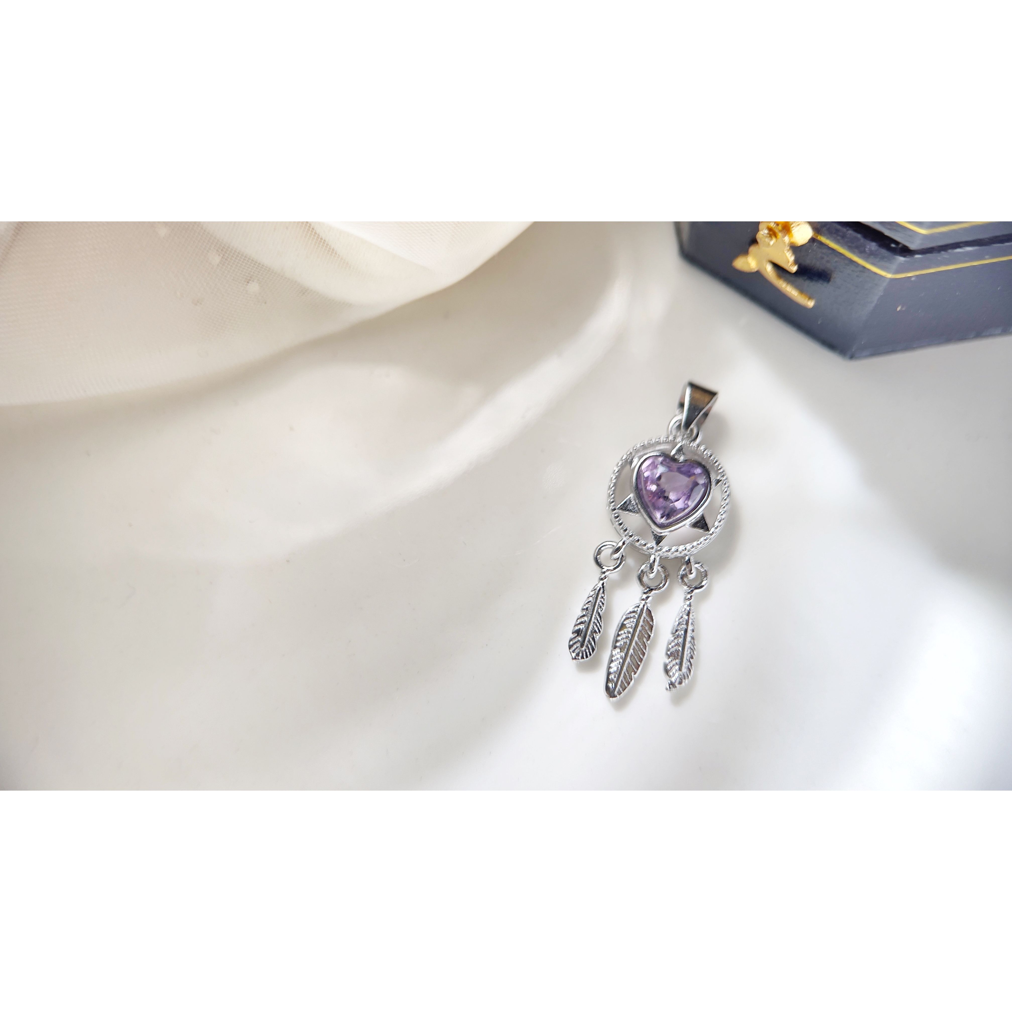 送皮繩 天然紫水晶捕夢網吊墜