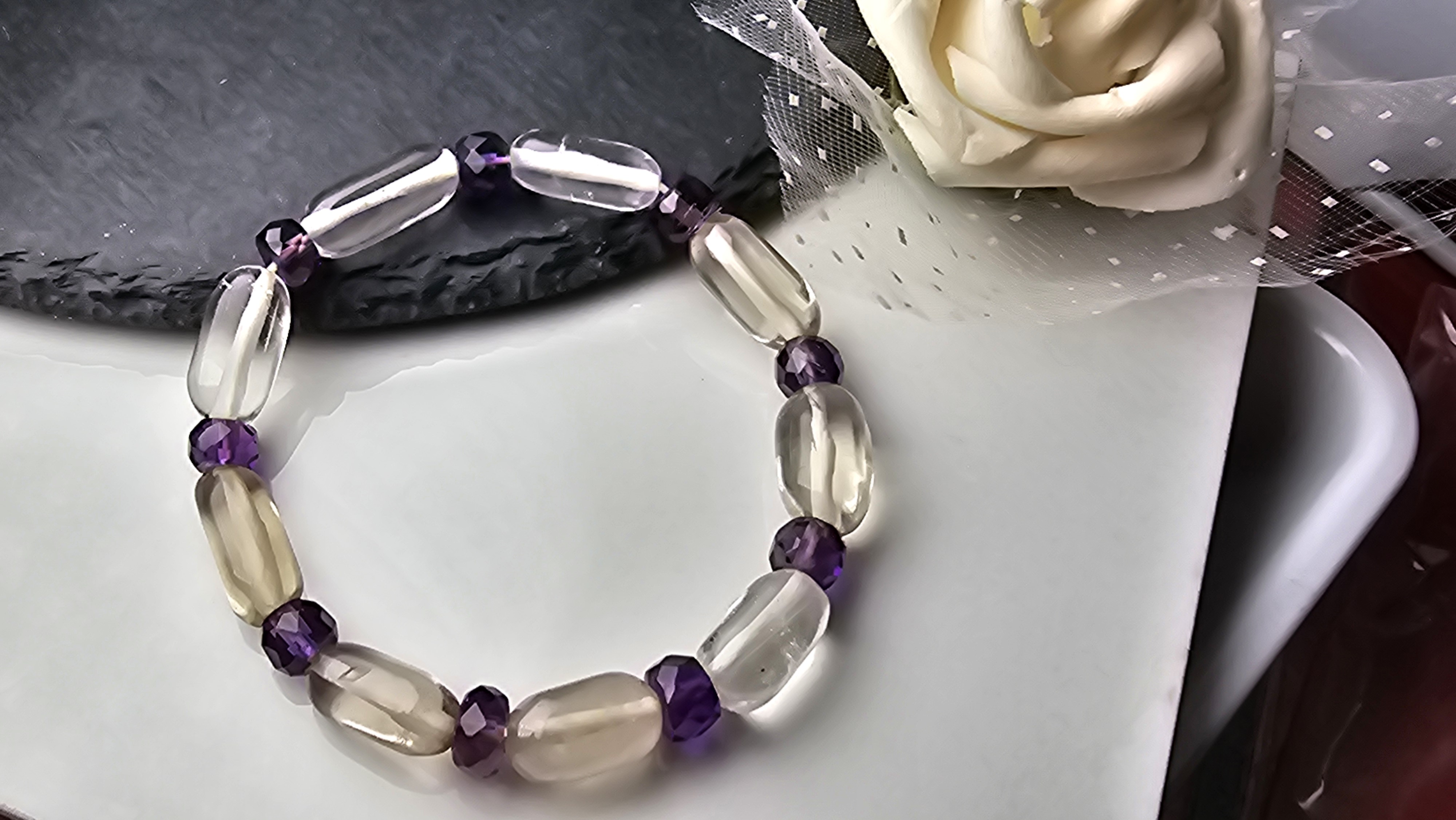 一物一圖🔆天然印度切割紫水晶白水晶手串