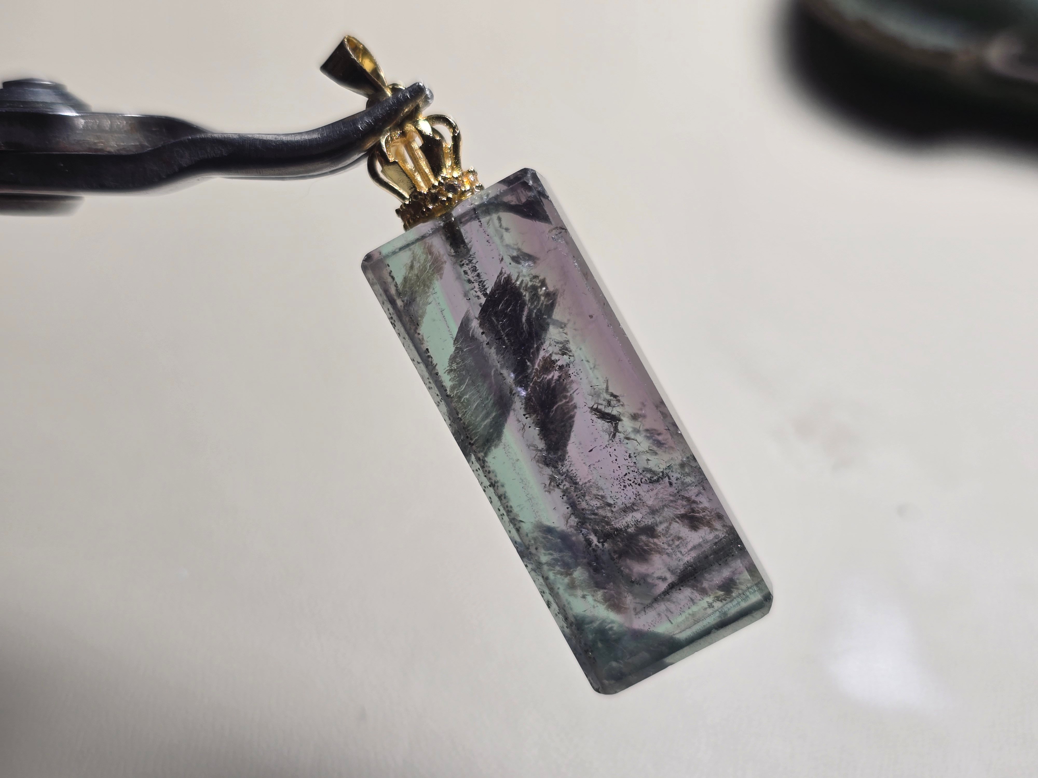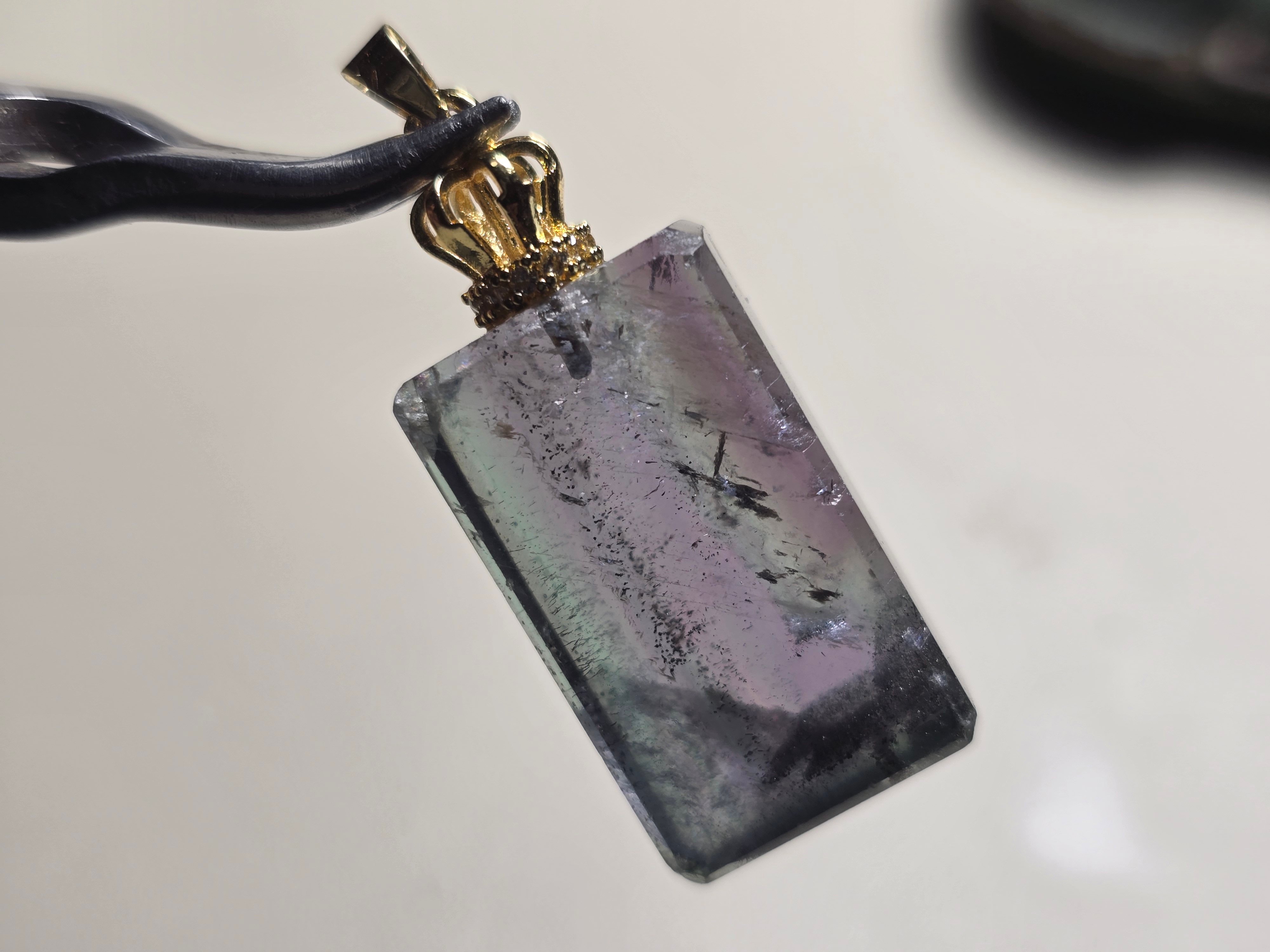 提升專注力 招財聚富 YSWTK1023 一物一圖 天然螢石黃鐵礦共生吊墜