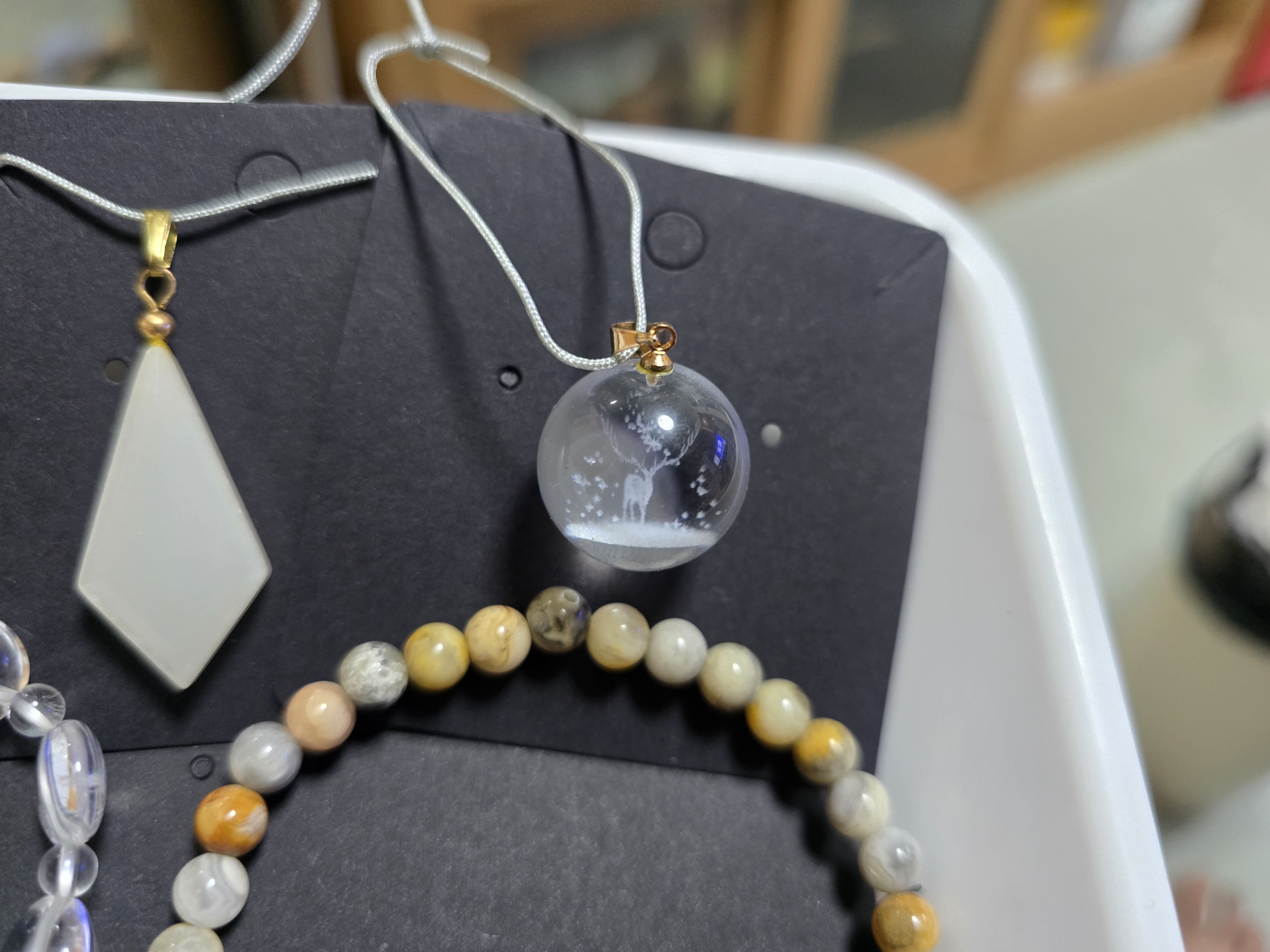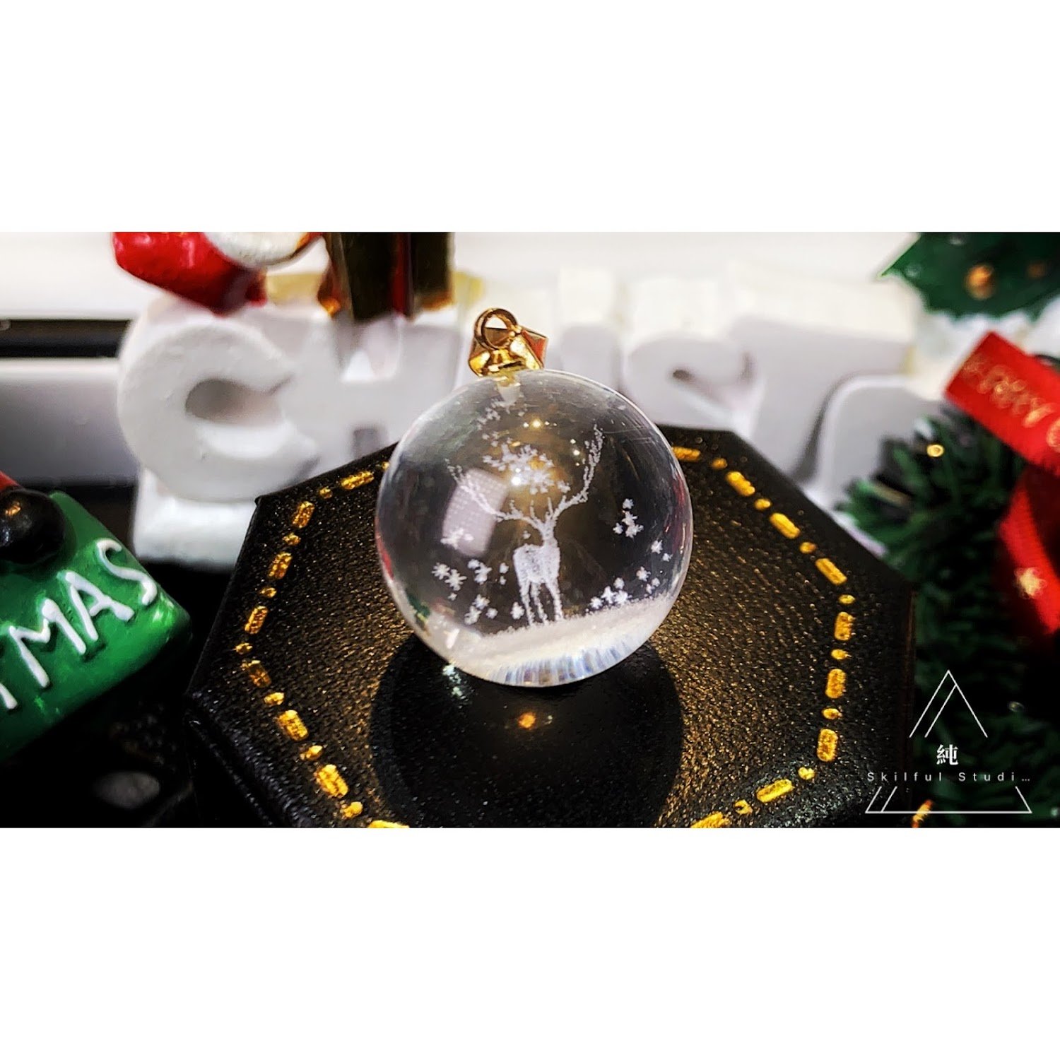 聖誕套裝預售 1set5件 天然白水晶手串 馴鹿內雕刻吊咀