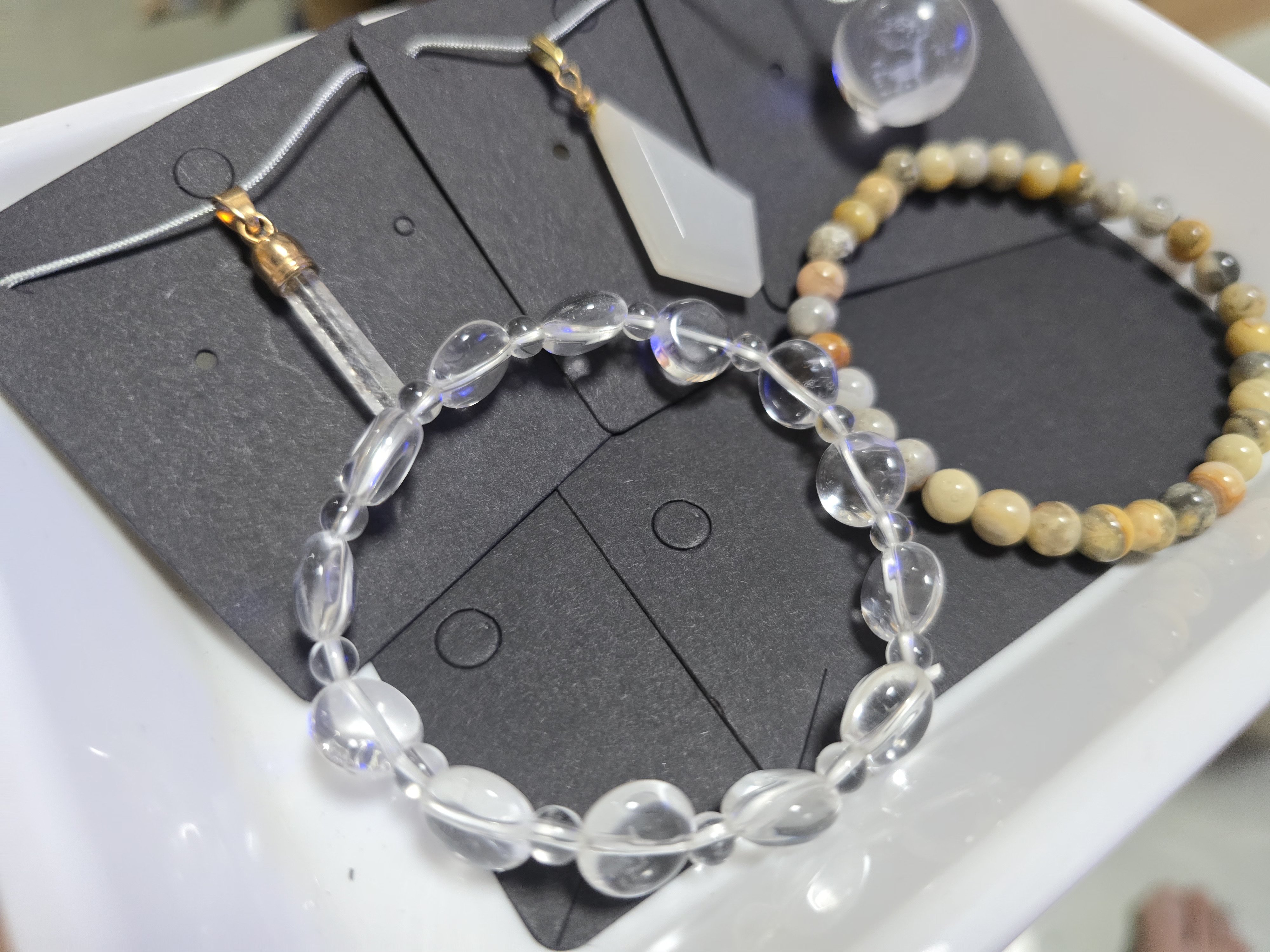 Set A 天然白水晶扭扣手串 x1 約19mm 白水晶圓珠內雕刻吊墜 x1 送 纏絲手串 x1 白玉吊墜(形狀隨機,菱形 水滴)x1 白水晶柱 Set B 天然白水晶扭扣手串 x1 約14mm 白水晶圓珠內雕刻吊墜 x1 送 纏絲手串 x1 白玉吊墜(形狀隨機,菱形 水滴)x1 白水晶柱 x1 Set C 天然白水晶方型扭扣手串 x1 約14mm 白水晶圓珠內雕刻吊墜 x1 送 纏絲手串 x1 紫水晶吊墜(形狀隨機,菱形 水滴)x1 白水晶柱 x1 Set D 天然白水晶方型扭扣手串 x1 約14mm 圓珠內雕刻吊墜 x1 送 纏絲手串 x1 白玉吊墜(形狀隨機,菱形 水滴)x1 白水晶柱 x1 主石呎吋(約):如圖 手鏈長度(約): 戒指圈口(約):開口 可調校(如適用) 重量(約):g 功效連結: <<綜合資訊>> -星座守護石 -七種消磁淨化方式 -對應脈輪 -功效分類區 <睇吓有乜嘢適合你> -門市優惠 -限時優惠碼 -Follow FB -Follow IG -Whatsapp -門市優惠 -限時優惠碼 https://skilfulstudio.wixsite.com/mysite/%E8%81%AF%E7%B5%A1%E6%88%91%E5%80%91 ⭐️水晶為天然產物 會有綿絮 視乎品質會有冰裂情況 顏色會或多或少有深有淺 會於產品照片及價錢盡量呈現 ⭐️原石擺件類産品 必定會有瑕疵 視乎大小 小店會盡量呈現於照片中 並 會於價錢中呈現 ⭐️純銀925產品因有機會有氧化情況 (特別手工繞線款式)可以用銀布清潔 ⭐️天然珍珠必定會有生長紋 ⭐️小店產品照片會盡量將所有瑕疵位置呈現 ⭐️生產成品首飾 師傅會選擇將瑕疵位置利用首飾配件遮蓋 超級完美主義者留意啦🙇🏻♀️ 不設留貨🙅♀️ 不禮貌人仕🙅♀️ 及 棄單者恕不招待🙇🏻♀️ 🌟 🌟現可加入成為我地VIP $1000 可以當$1150 可累積使用😬 詳情PM我哋啦😬 ————————————